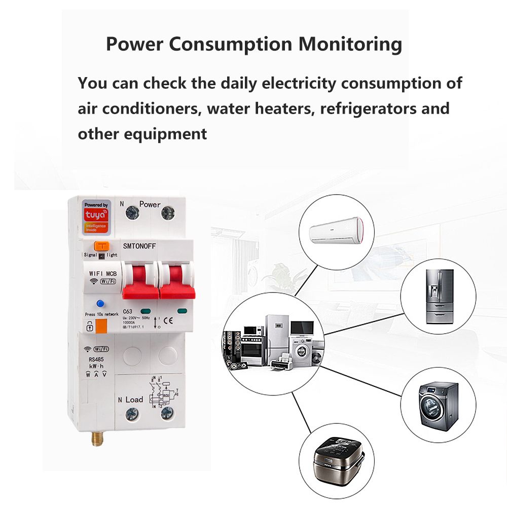1X Tuya WIFI circuit breaker Energy Meter leakage protection kWh Meter wattmeterBO voice control alexa google for smart home