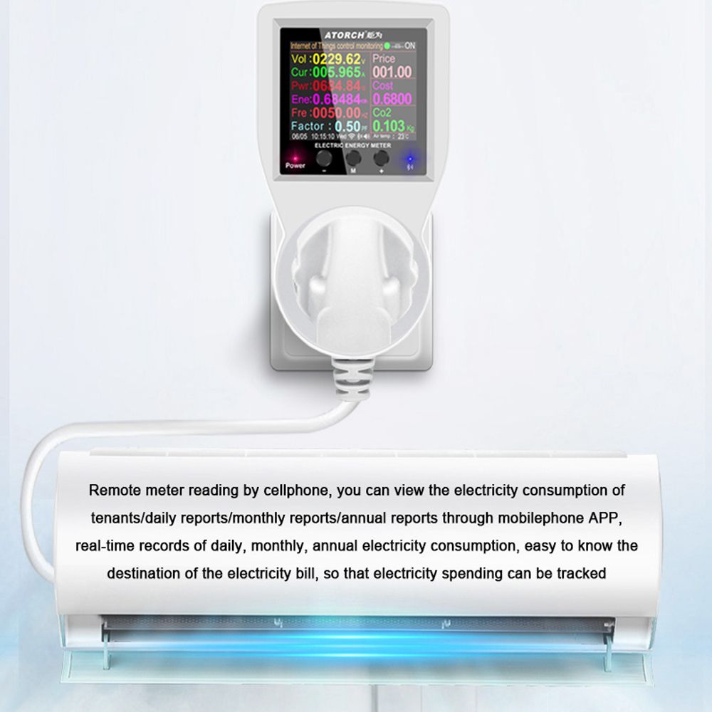 This monitoring meter with LCD color screen, which can display a variety of content, such as detection of current voltage, current, , electricity, frequency, factor, measurement data. Remote meter reading by cellphone, you can view the electricity consumption of tenants/daily reports/monthly reports/annual reports through mobilephone APP, real-time records of daily, monthly, annual electricity consumption, easy to know the destination of the electricity bill, so that electricity spending can be tracked.