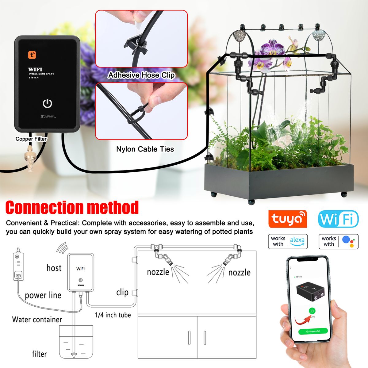 Convenient & Practical: Complete with accessories, easy to assemble and use, you can quickly build your own spray system for easy watering of potted plants.