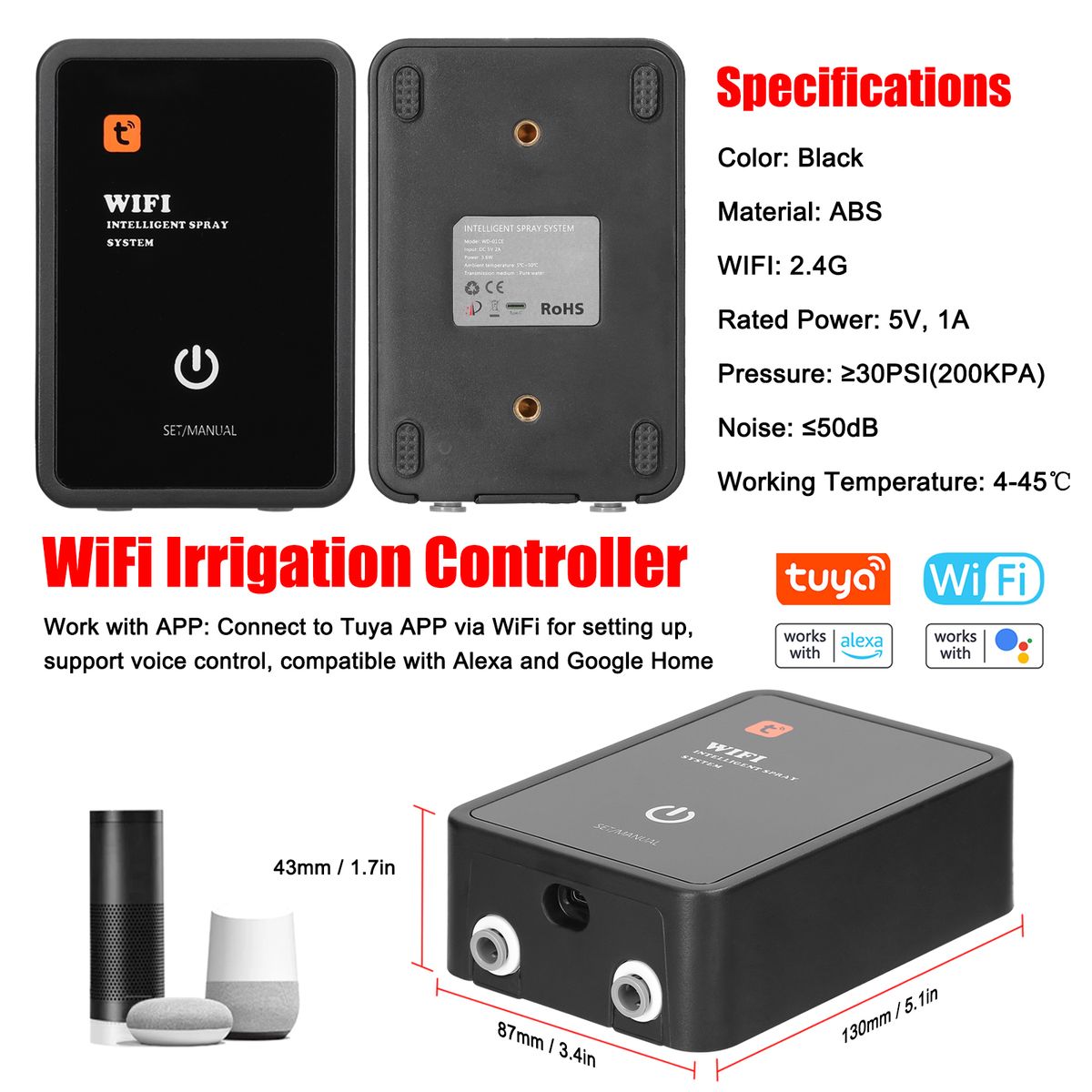 Work with APP: Connect to Tuya APP via WiFi for setting up, support voice control, compatible with Ale-xa and Google Home.