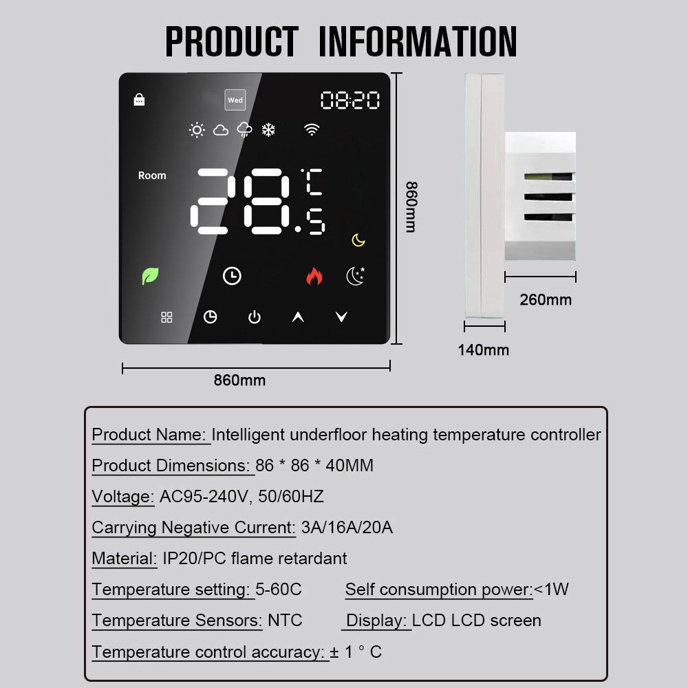 Mobilephone Tuya APP Control (WIFI Version Only): Working perfectly with the mobilephone Tuya App, your intelligent home experience will be greatly maximized. Users can control the thermostat from anywhere there is an internet connection via a mobilephone app to adjust the temperature of their home without having to be at home, allowing for automated and intelligent temperature control.