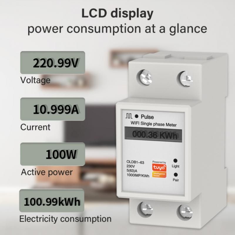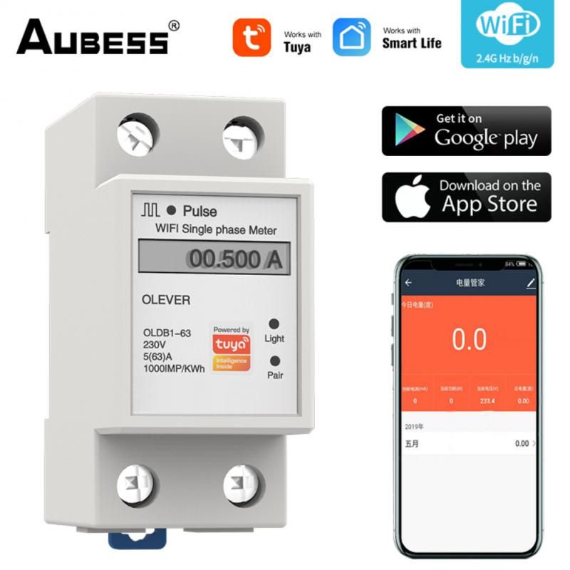 1X Tuya WiFi Smart Metering Energy Meter 110-286V Smart Life APP Din Rail Single-phase Smart Metering Switch Power Consumption Hot