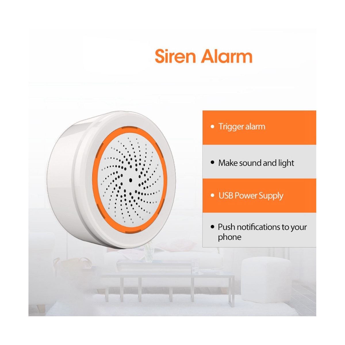 Main Features: 1. ZigBee Smart Siren Alarm with Sound Light Featured: 2 IN 1 alarm system with 90dB sound and flashing light is specially designed for smart home security with real-time alarm, detecting house condition timely.