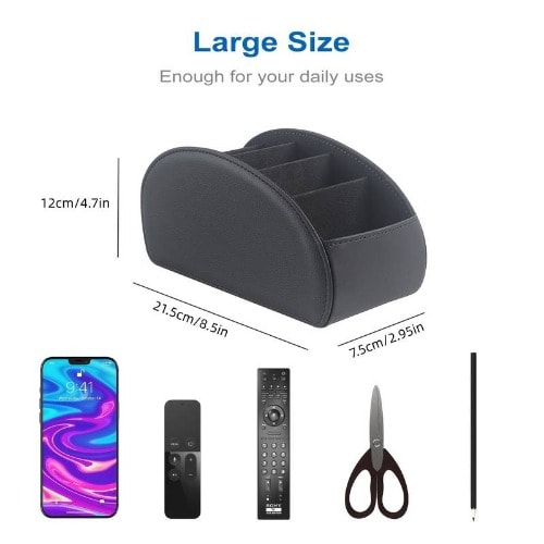 Holds up to four (4) remote controls of all sizes. Stops you from losing remotes and tidies up your mess with 4 compartments cleverly designed to store remotes for your TV, wii, ps3, ps4, apple TV,