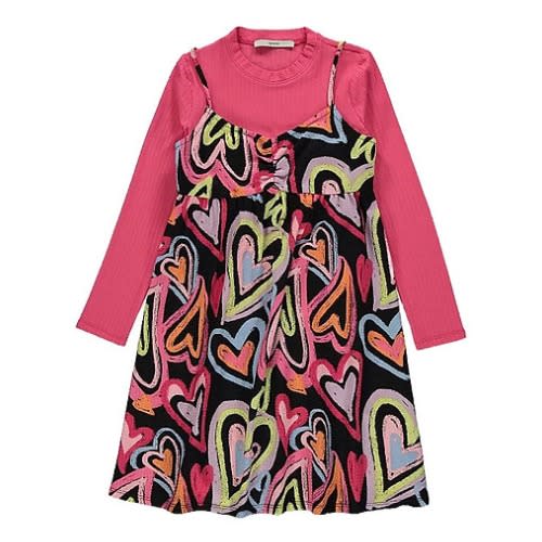 Buy Two Piece Outfit - Heart Print Dress With Long Sleeve Top For Age 7 To 8 in Nigeria
