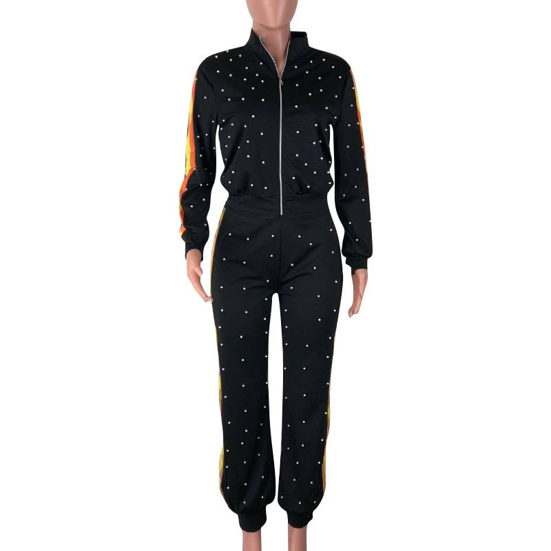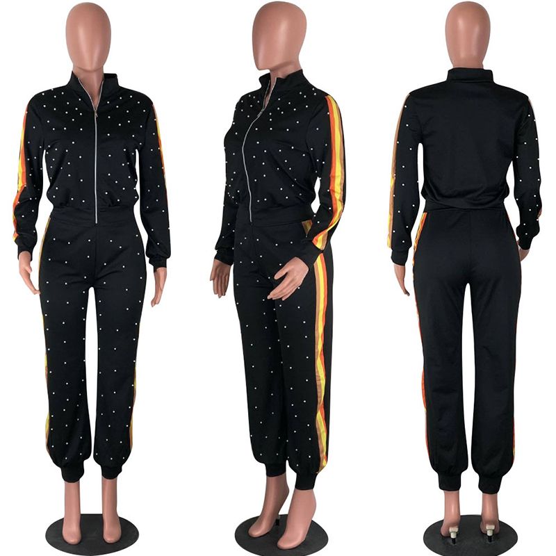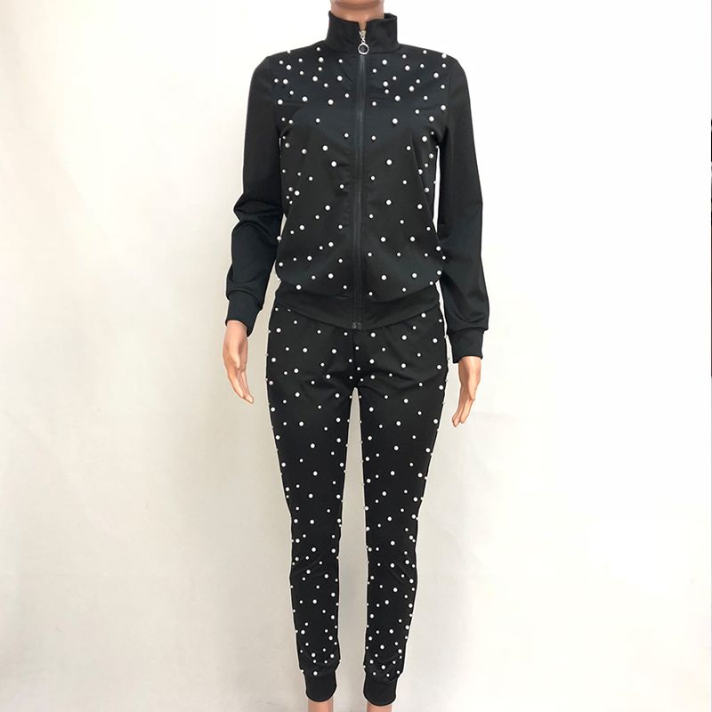 1X TWO PIECE SET Pearl Tracksuit Beads Long Sleeve Leisure Jogger Pants Women Sweat Suits Streetwear Lounge Wear Clothes Plus Size