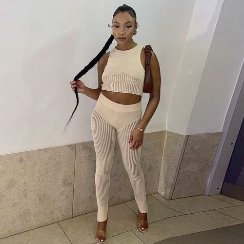 Buy Two Piece Set Women Mesh Sleeveless Short Top Sexy High Waist Female Trousers in Nigeria