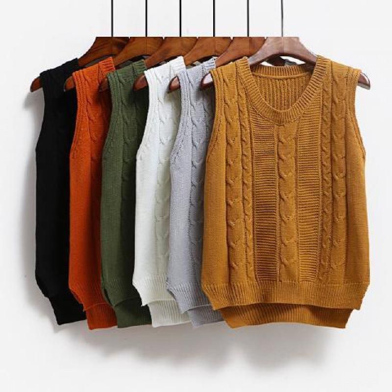 Buy Two piece set+new Korean version outerwear round neck knitted short women's outerwear sleeveless in Nigeria