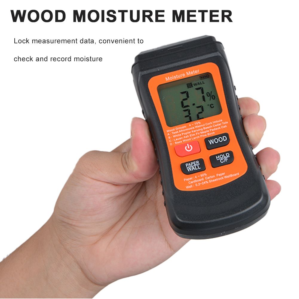1X Two Pins Timber Damp Moisture Meter Detector 3 Mode Digital Wood Humidity Tester Detector Portable Wood Moisture MeterDetector
