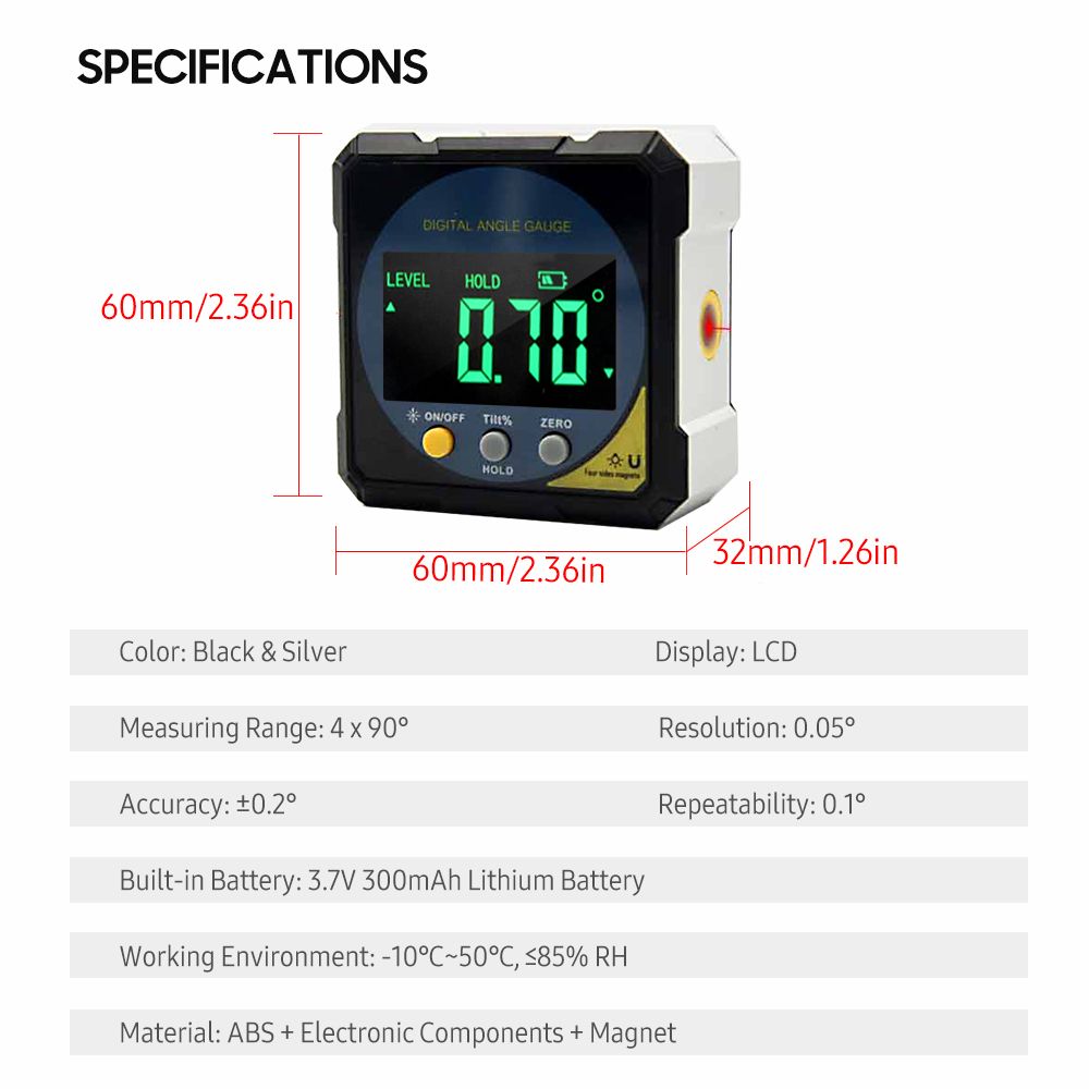 Built-in magnets in 4 corners ensure the inclinometer and measured object are close fitting. Mini size, lightweight and portable.