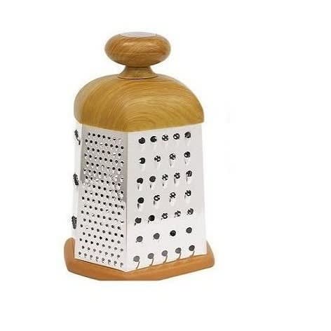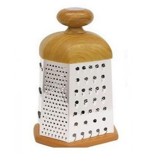 This Kitchen Ware Grater with Wooden Handle is ideal for your kitchen use, featuring a 6-sided, different hole type, giving you the convenience of shredding, chopping or stripping your veggies, cheese or chocolate, your own way. The wooden handle allows for for an easy and firm grip.