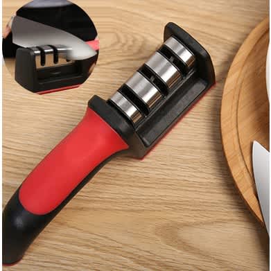 Extremely fast, 3-stage manual sharpener is perfect for European/American/Asian Style knives; Perfect for Kitchen, Santoku, Sports, Pocket Knives