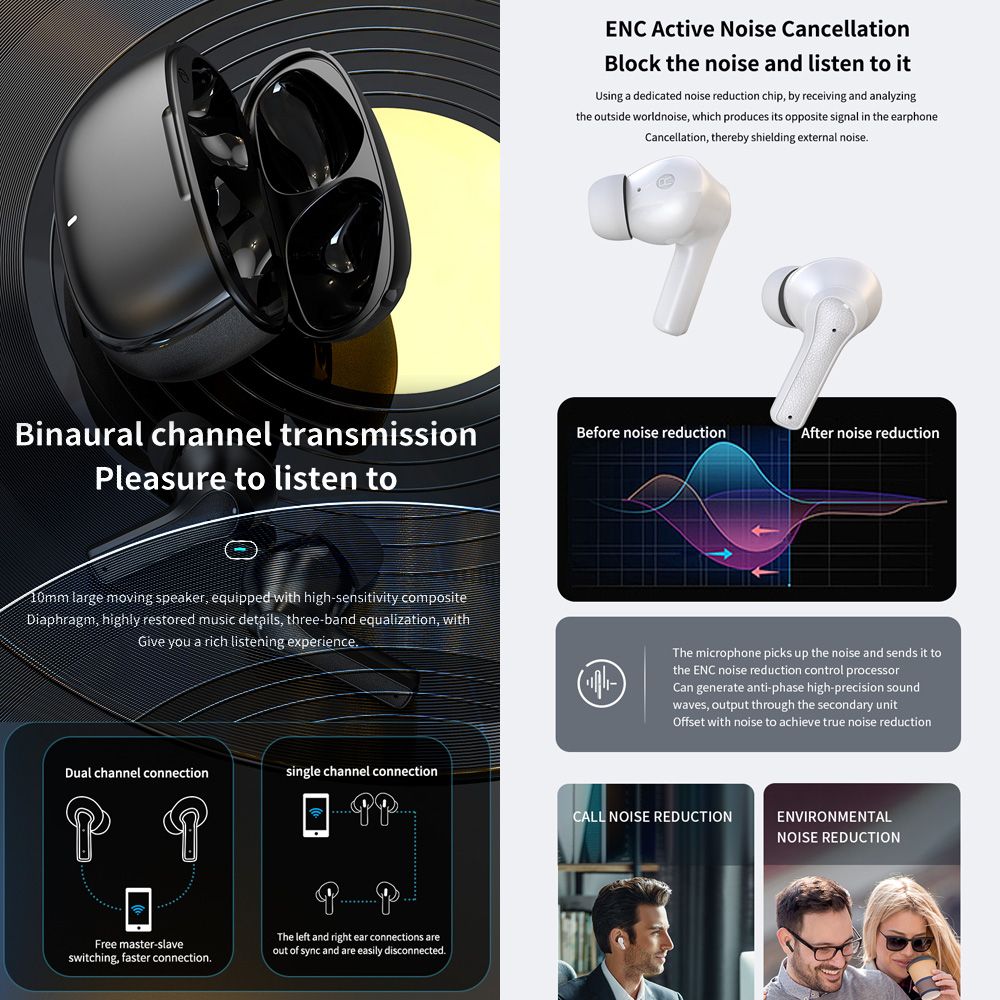 [ENC active noise cancellation] Using dedicated noise reduction chip,by receiving and analyzing the outside world noise,which produces its opposite signal in the earphone cancellation,thereby shielding external noise.