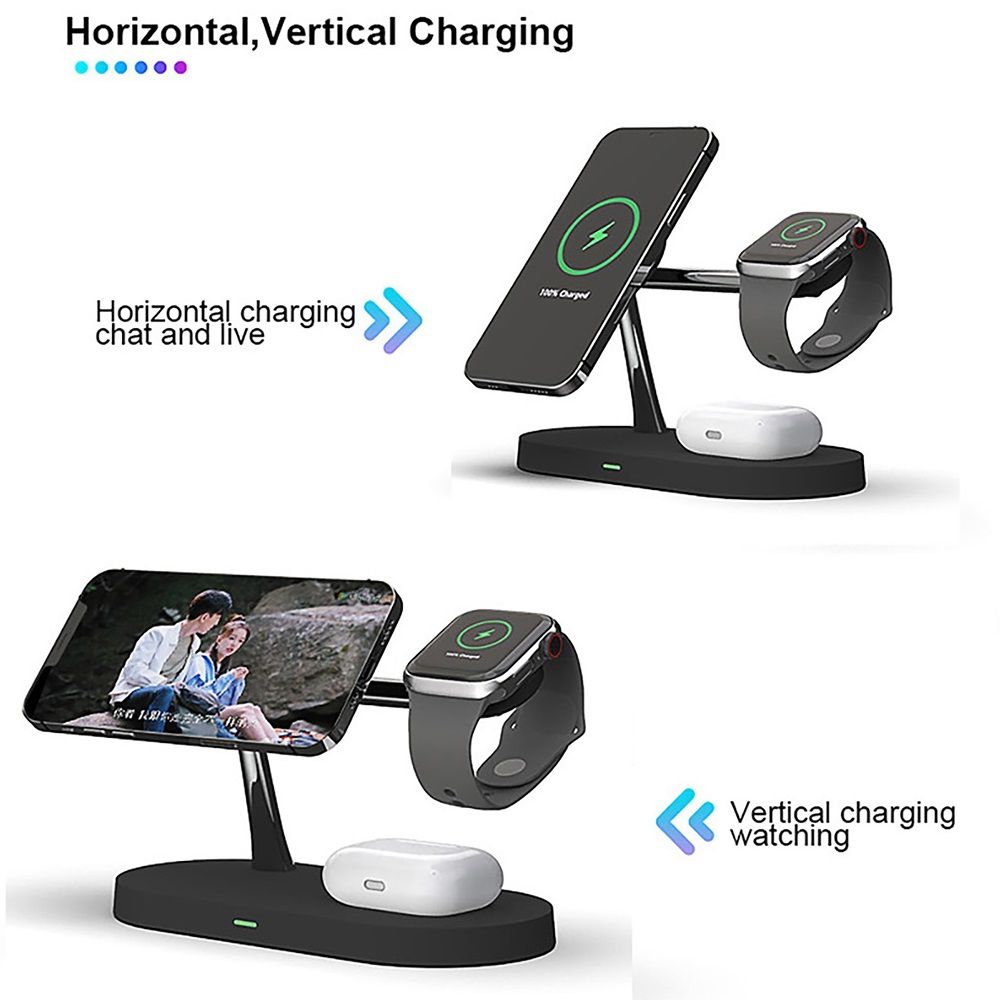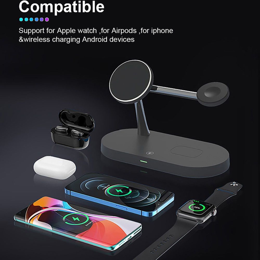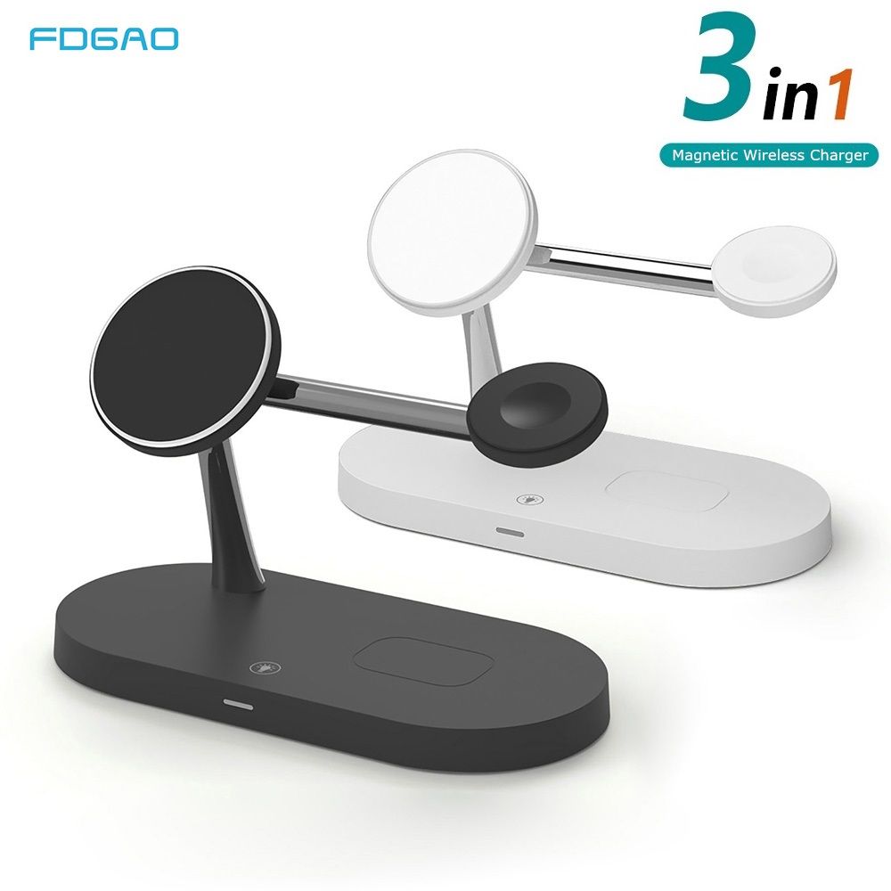 1X 3 In 1 Magnetic Wireless Charger Stand 15W Fast Charging Station For IPhone 13 12 Pro Max Airpods Pro Apple Watch SE 6 5 4 3 2