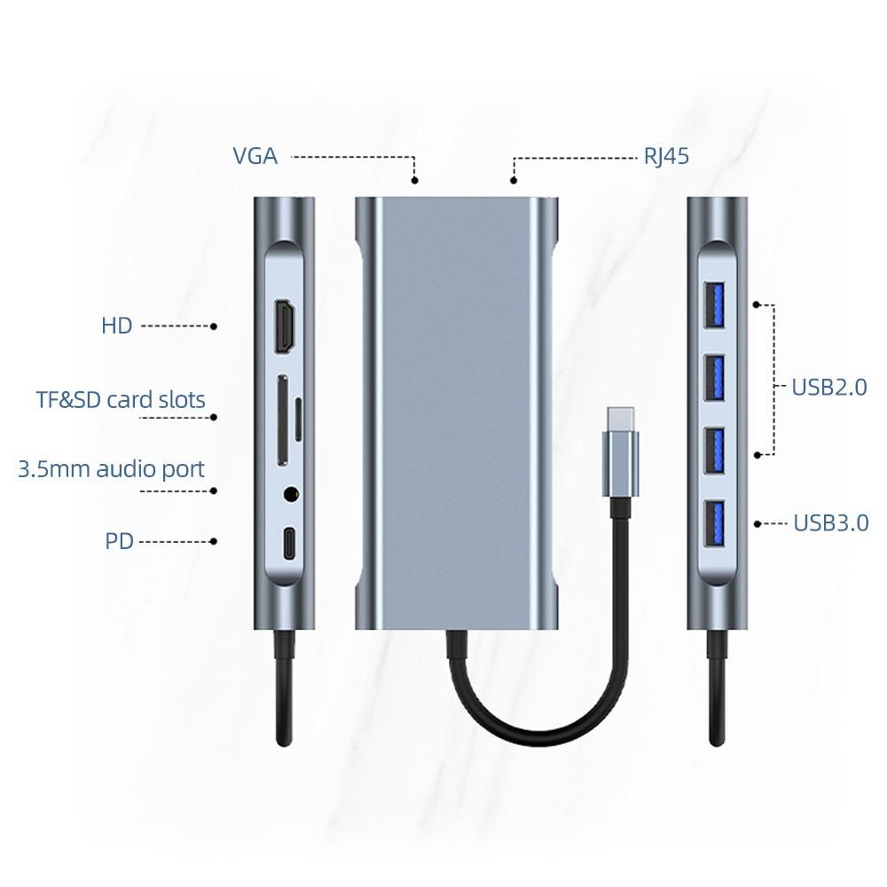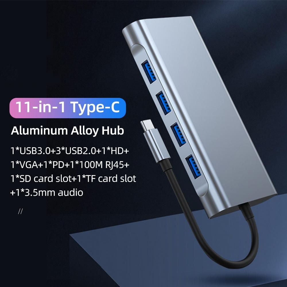 Buy Type-C 11-in-1 Hub Aluminum Alloy Shell with USB2.0 USB3.0 HD VGA PD RJ45 Ports SD TF Card Slots 3.5mm Audio Interface in Nigeria