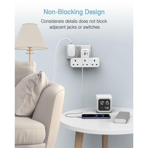- Space Saving:This plug extension Item dimension: 16 x 10 x 2.9 cm and this adaptor plug is cable free, simply plugs into the wall and then you can use it. Ideal for when you want to use multiple devices at the same time. Put it on any sockets, you still have enough room to be used.