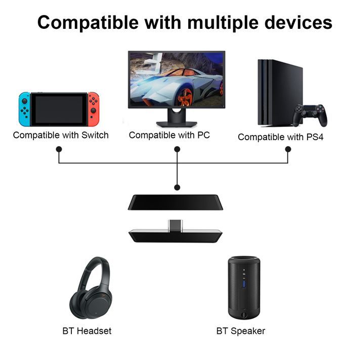 4. If you want to use the transmitter on the P/S4 game console, you need to connect the transmitter with Type-C to USB OTG Adapter first, plug it into the game console via USB port, and then pair it with BT headset.