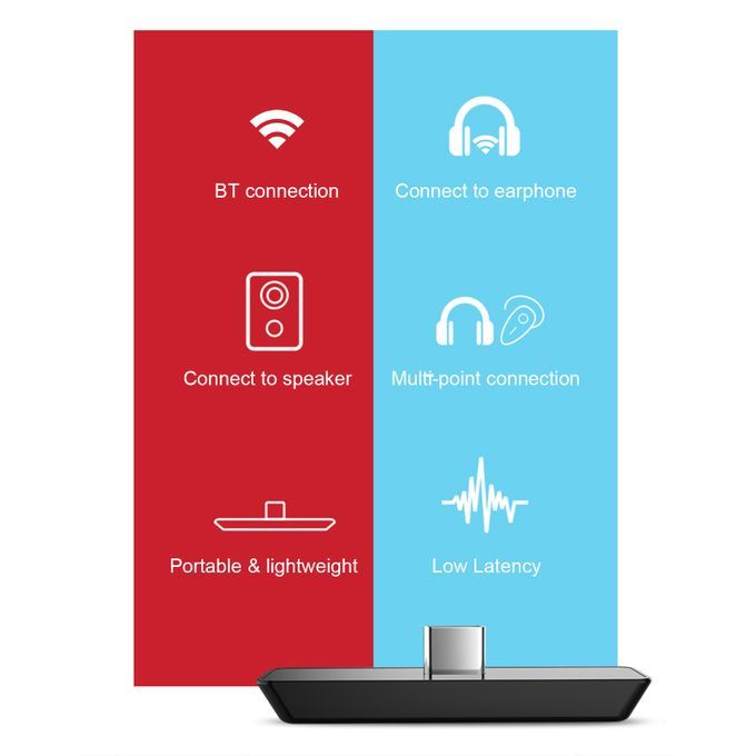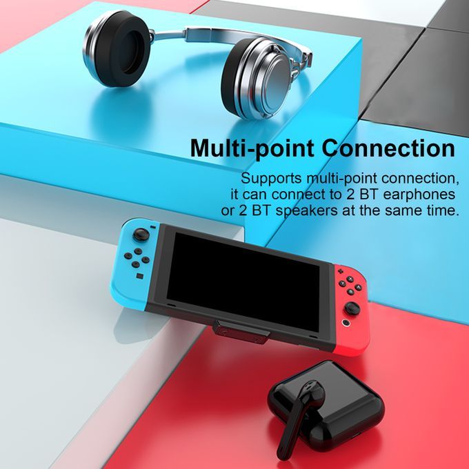 Supports multi-point connection, it can connect to 2 BT earphones or 2 BT speakers at the same time.