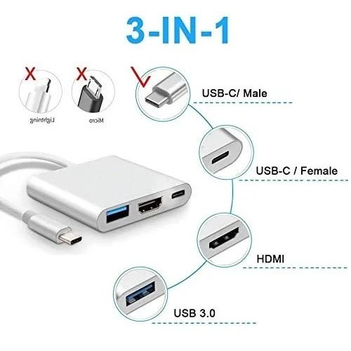 Buy Type C To Hdmi - Usb Hub & Video Adapter - 3 In 1 in Nigeria