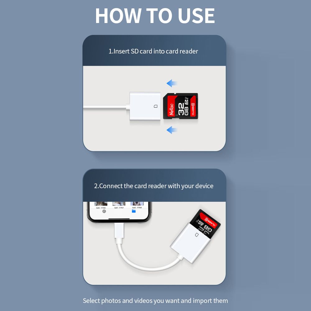 With Type-C to SD Card Reader, it solves the problem of no card slot for type-C devices. And you can use it to check pics taken by camera on your phone and post them on your social apps to share with others. And it supports SD/TF card below 64GB (Including 64GB).