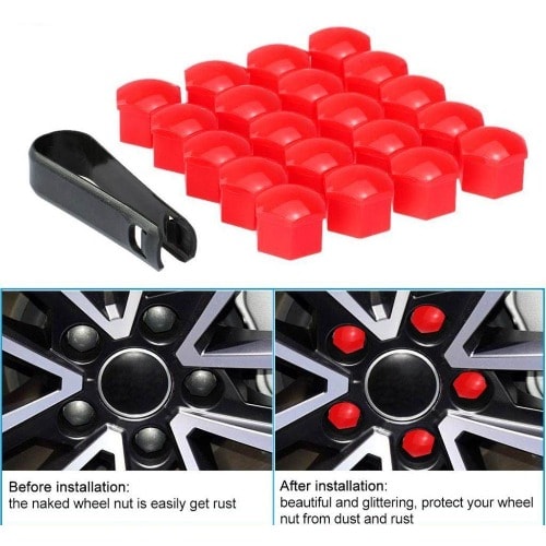 It prevent the screws from rusting.It is durable and toughness.Easy to install, just press the nut covers straight to the bolts.Wheel nut covers which can both protect and decorate the wheel bolts of your car. The wheel nutvis fastener, it's used to secure a wheel on a vehicle and also makes it colourful to fit your vehicle body paint, it's 20 pieces wheel nut cover to fit in your wheel