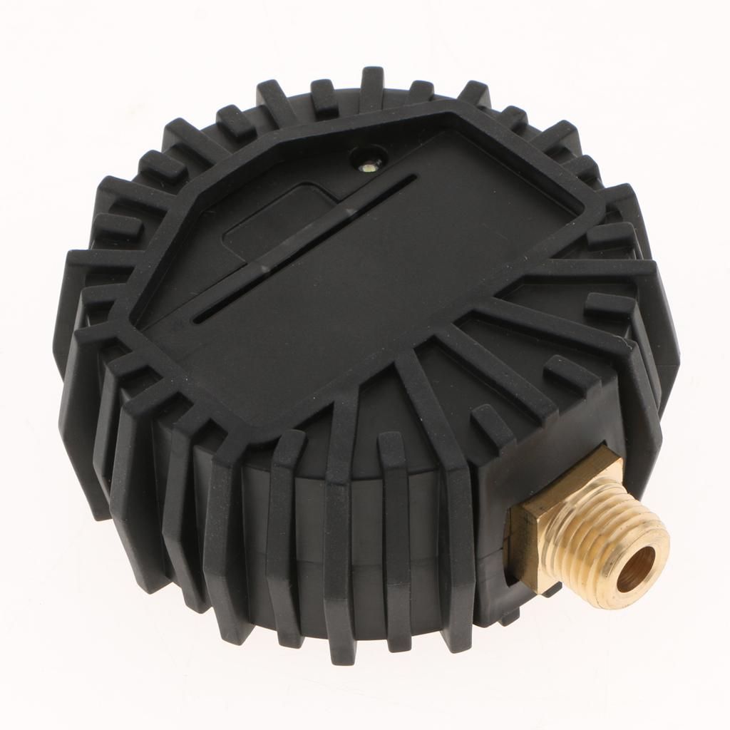 Material:Heavy Duty Stainless Steel +Brass componentsSize: 70mmx70mmx35mmMeasure Scope: 0-200PSI=13.79(bar)=14.06(kgf/cm2)=1378.95KPaThe way of display: Digital LED lightInterior Battery: 2xAAA BatteriesApply scope: Universal typeWorking temperate: -10-50℃Measurement Units: PSI, KPA, Bar, Kgf/cm2Thread specification 13mm WITH LCD light