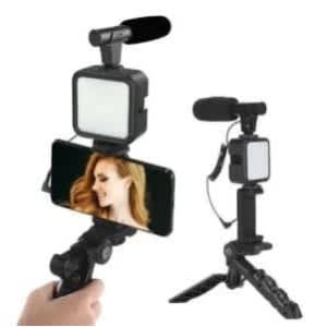 Vlogging YouTube/Blogging Kit +Mic+Tripod+Holder +Light+remote Vlogging Kit U/C shape potable handheld bracket gimbal Phone cameras stabilizer Vlogging Kit/Video Maker Kit +Mic+Tripod+Holder +Light+remote Vlogging Kit Potable Handheld Bracket Gimbal Phone Cameras Stabilizer Vlogging kit microphone, Bluetooth, light kit/video kit/ blogger kit for phones Nd cameras The AY-49U GTI Camcorder Microphone Video Creation & Streaming Kit is a portable U/C handheld bracket stabilizer kit. Vlogging Kit/Video Maker Kit +Mic+Tripod+Holder /Light This portable kit includes a U/C handheld bracket, a mini LED light, a microphone, a phone holder and a remote control; perfect for blogs, podcasts, live broadcasts, Youtube, virtual classes and more. Its U/C shaped bracket is comfortable and stable.