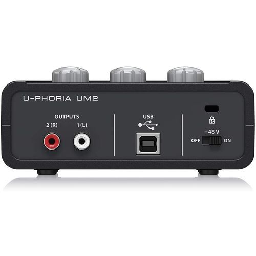 When it's time to make recording history, you need the best audio interface you can get - and you need one you can count on. That's why we're kicking it up a notch with the amazing UM2, an ultra-compact , 48 kHz USB audio interface with a studio-grade XENYX Mic Preamp, combination XLR/TRS input for your vocal and direct instrument input (no DI required) and an additional 1⁄4" Instrument Input. The rich feature-set, which also boasts a powerful Phones Output for the Direct Monitoring of your session, plus 2 Outputs and USB-supplied power - makes the UM2 the best, and most-portable recording interface in its class! FEATURES: 2x2 USB audio interface for recording microphones and instruments Audiophile 48 kHz resolution for professional audio quality Compatible with popular recording software including Avid Pro Tools*, Ableton Live*, Steinberg Cubase*, etc. Streams 2 inputs / 2 outputs with ultra-low latency to your computer, supporting Mic OS X* and Windows XP* or higher State-of-the-art, +48 V-powered XENYX Mic Preamp comparable to stand-alone boutique preamps Powerful Phones output with Level control and Direct Monitor select Status, Signal and Clip indications for perfect overview USB port for connection and power Free audio recording, editing and podcasting software plus 150 instrument/effect plug-ins downloadable at behringer.com 3-Year Warranty Program* Designed and engineered in Germany