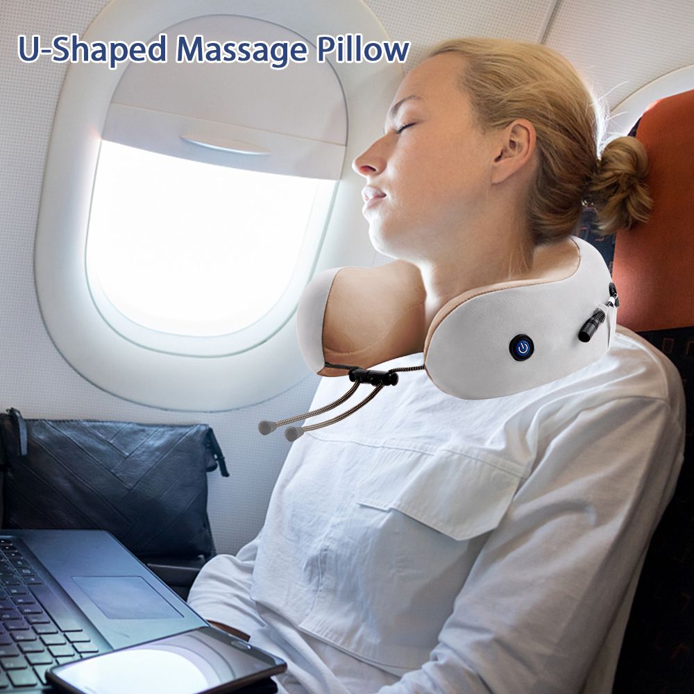 Ergonomic U-shaped design, made of memory cotton and soft velvet material, the massage pillow can effectively absorbs pressure and offers your neck the right level of comfort.