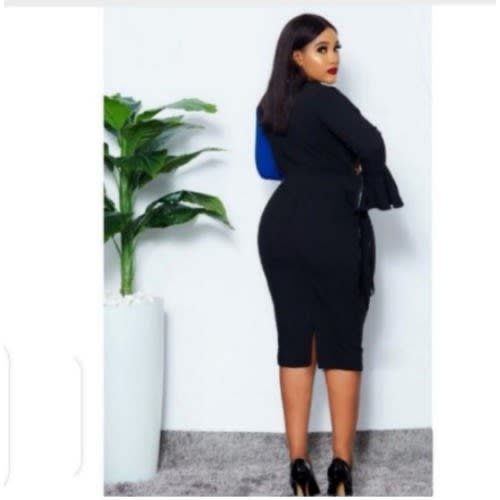 Buy Udom V-neck Patchwork Block Bodycon Dress In Blue & Black in Nigeria