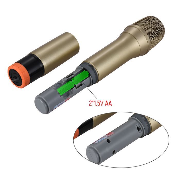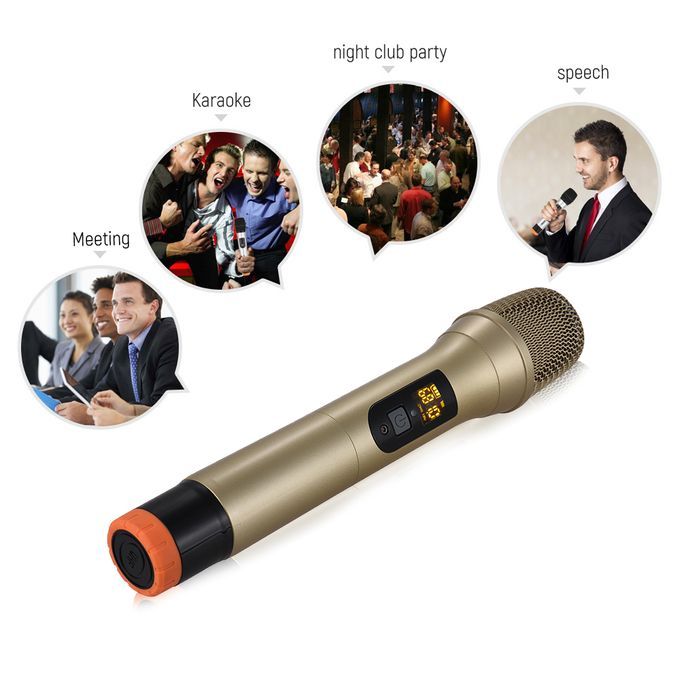 UHF wireless handheld microphone & receiver system for karaoke, party, DJ, business meetings, speech or other outdoor & indoor activities.