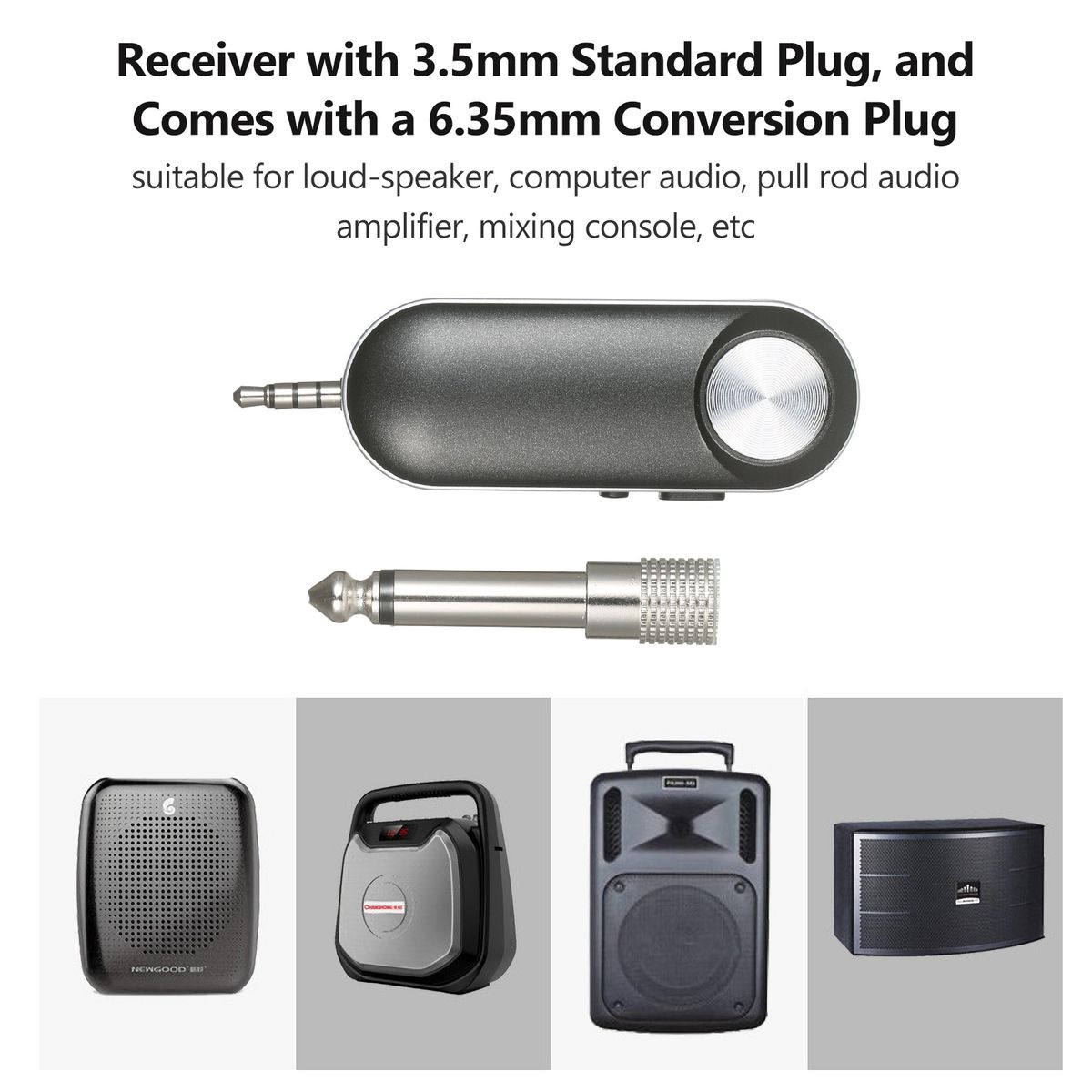Plug and Play, Strong Commonality: receiver with 3.5mm standard plug, comes with a 6.35mm conversion plug, which makes it suitable for loud-speaker, computer audio, pull rod audio amplifier, mixing console, etc.