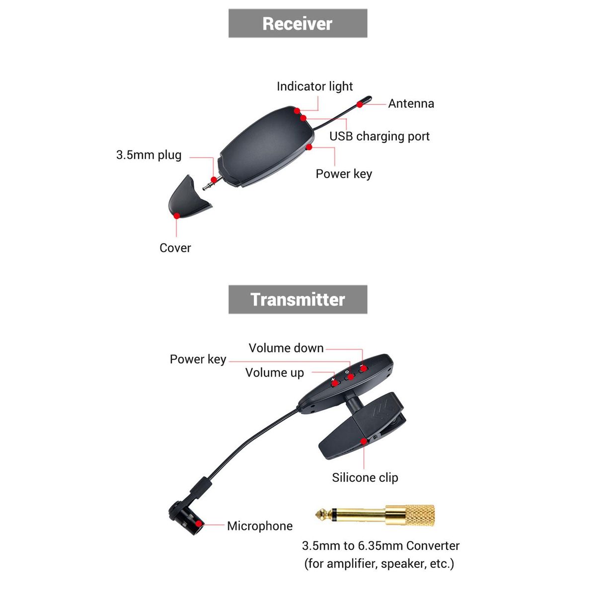 Buy UHF Wireless Cardioid Condenser Microphone Clip-on Musical Instrument Mic for Saxophone Trumpets Clarinet in Nigeria