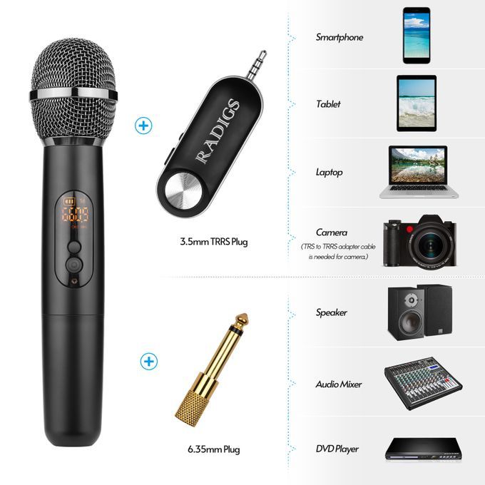 1 x Handheld Microphone,1 x Receiver,1 x 6.35mm Adapter,1 x USB cable