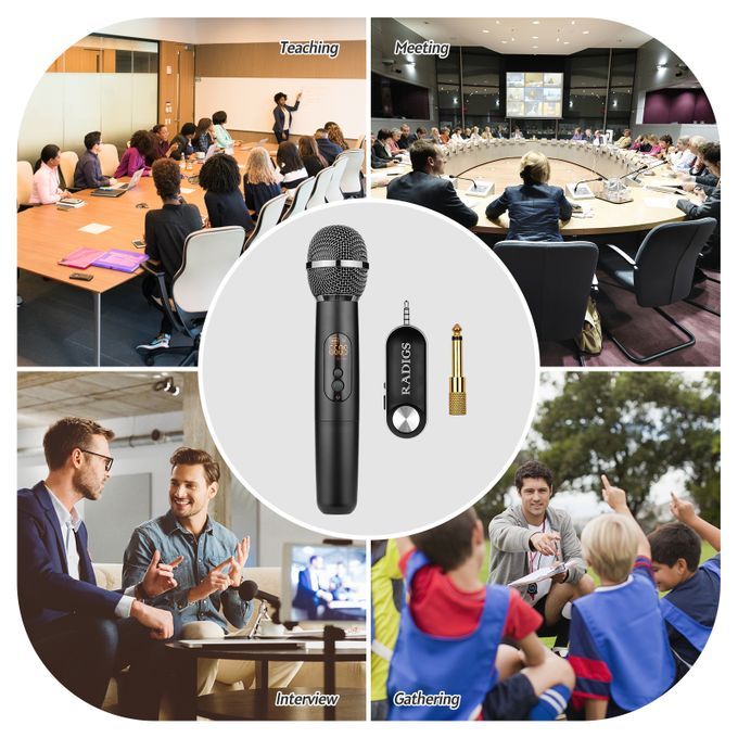 UHF Wireless Microphone System with Handheld Transmitter Receiver 500-950MHz 3.5mm Plug with 6.35mm Adapter for Smartphone Computer Speaker for Interview Activity Broadcast Hosting