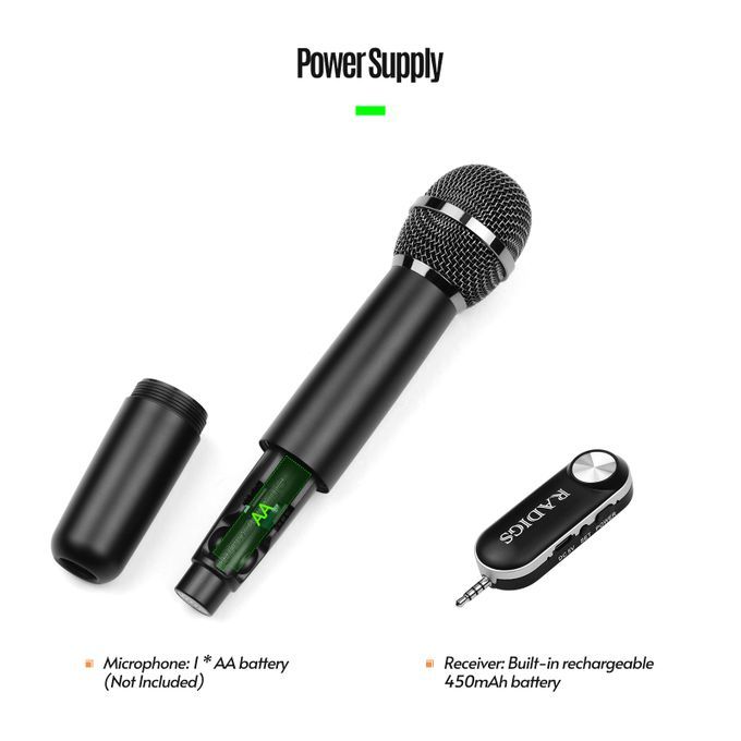 Condenser Handheld Microphone: Portable handheld microphone features dynamic pickup, total 23.5cm/9.25inch length makes it comfortable to hold, 2pcs AA batteries(Not included) powered for more portable use.