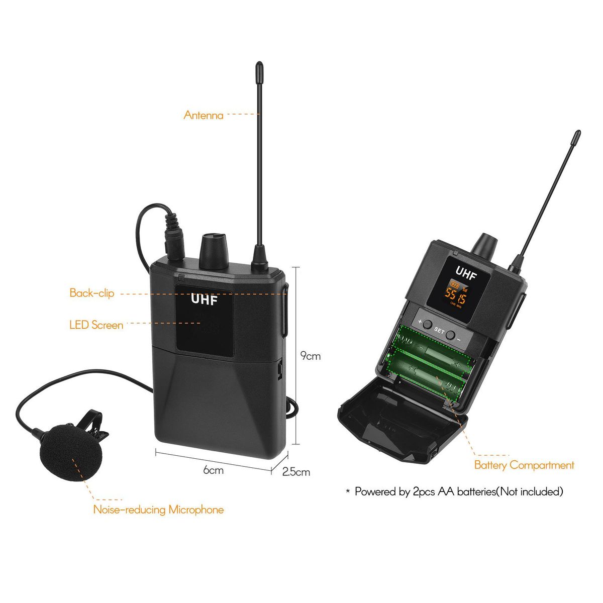 Buy UHF Wirless Microphone System with 2 Body-pack Microphone Transmitters Receiver for Smartphone Camera Video Recording Interview Broadcast in Nigeria