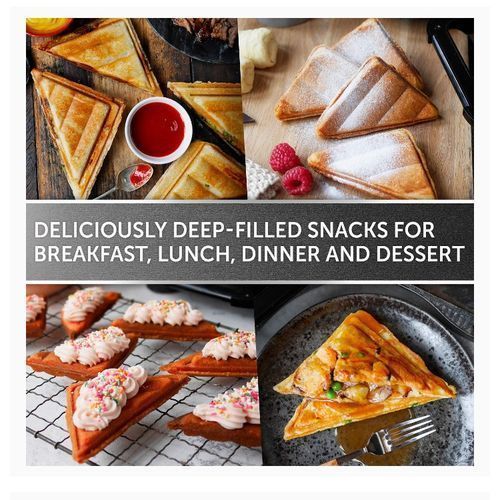 - Cut and Seal System: Makes triangular sandwiches and browns toasties more evenly, with all the fillings sealed inside