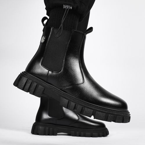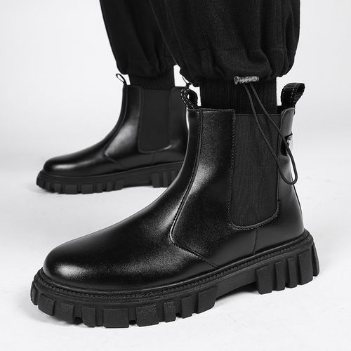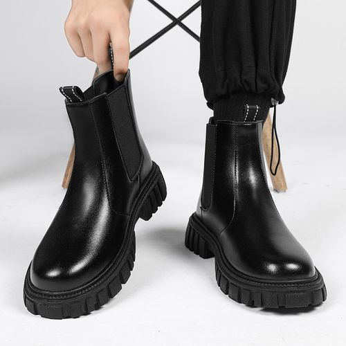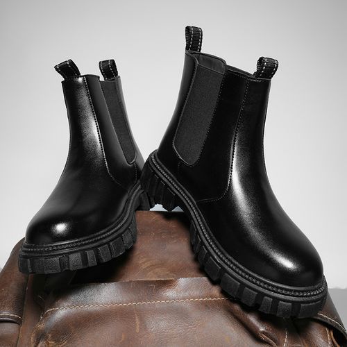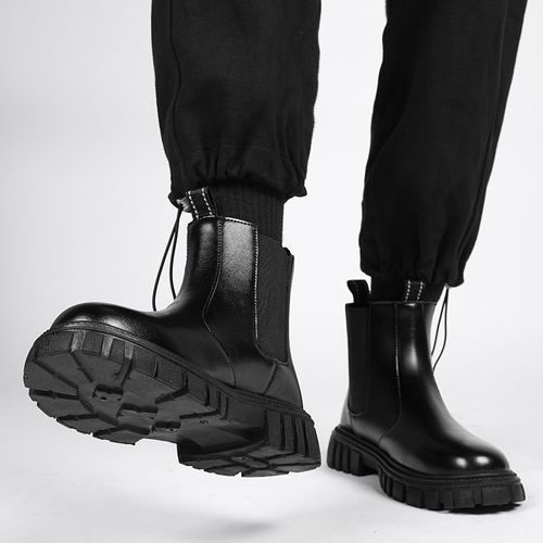 Buy Ultra-Cool Chelsea Boots Men Shoes Black Luxury Fashion Ankle Boots British Style Elegant Leather Chelsea Boots Male Slip On Thick Bottom Platform Shoes Handmade Business Casual Winter Shoes in Nigeria