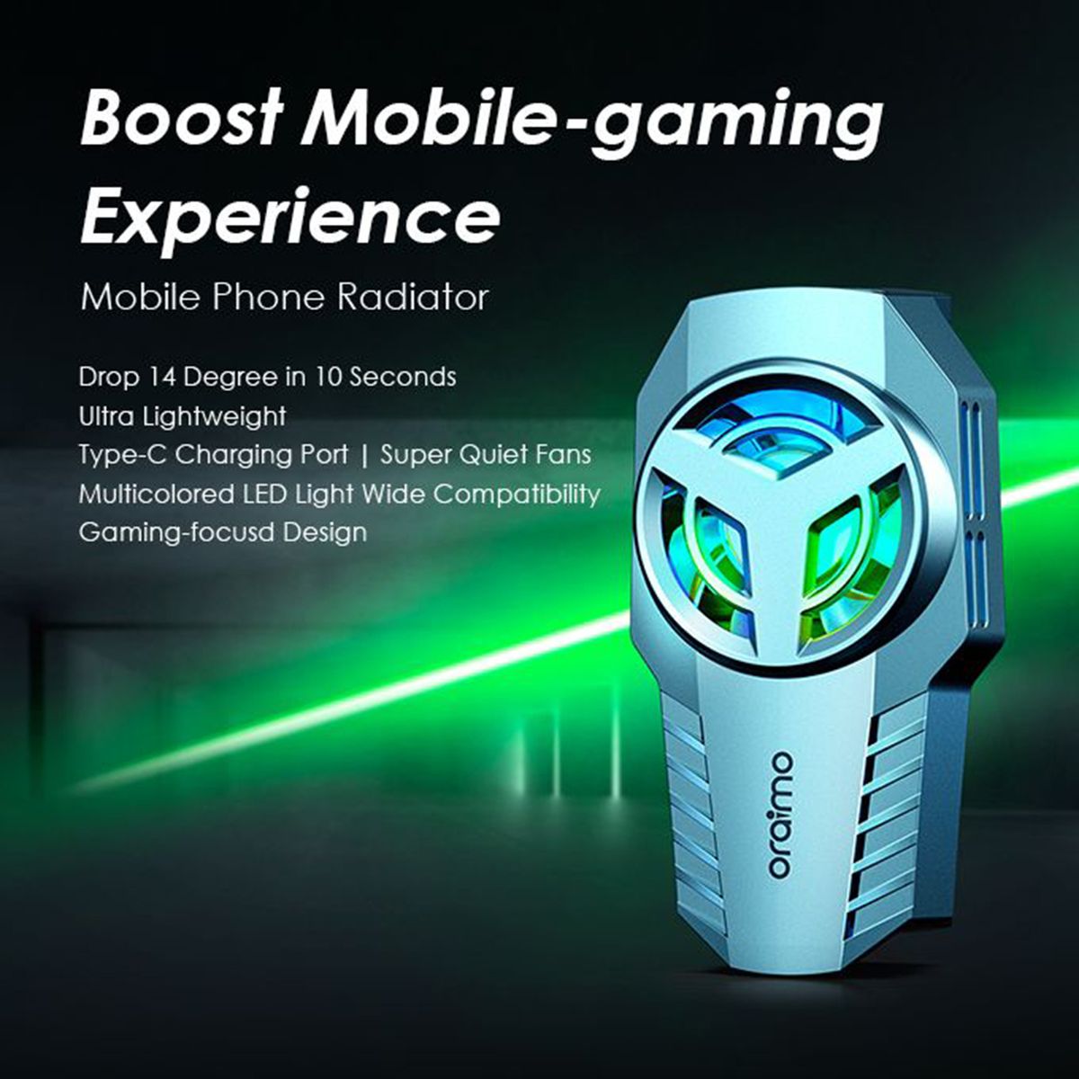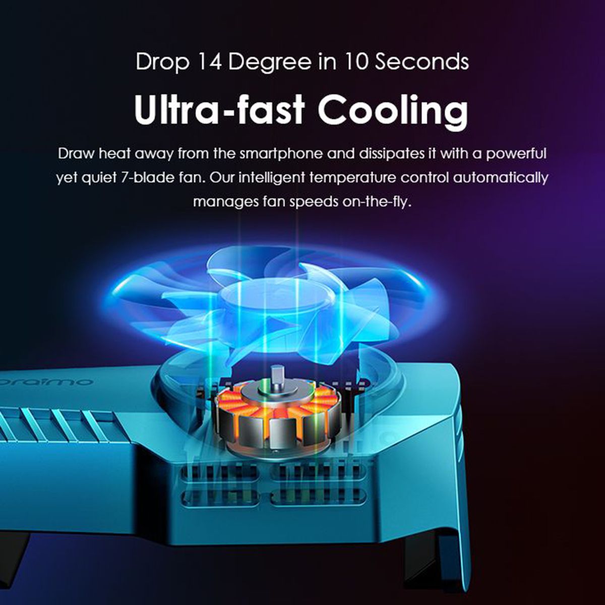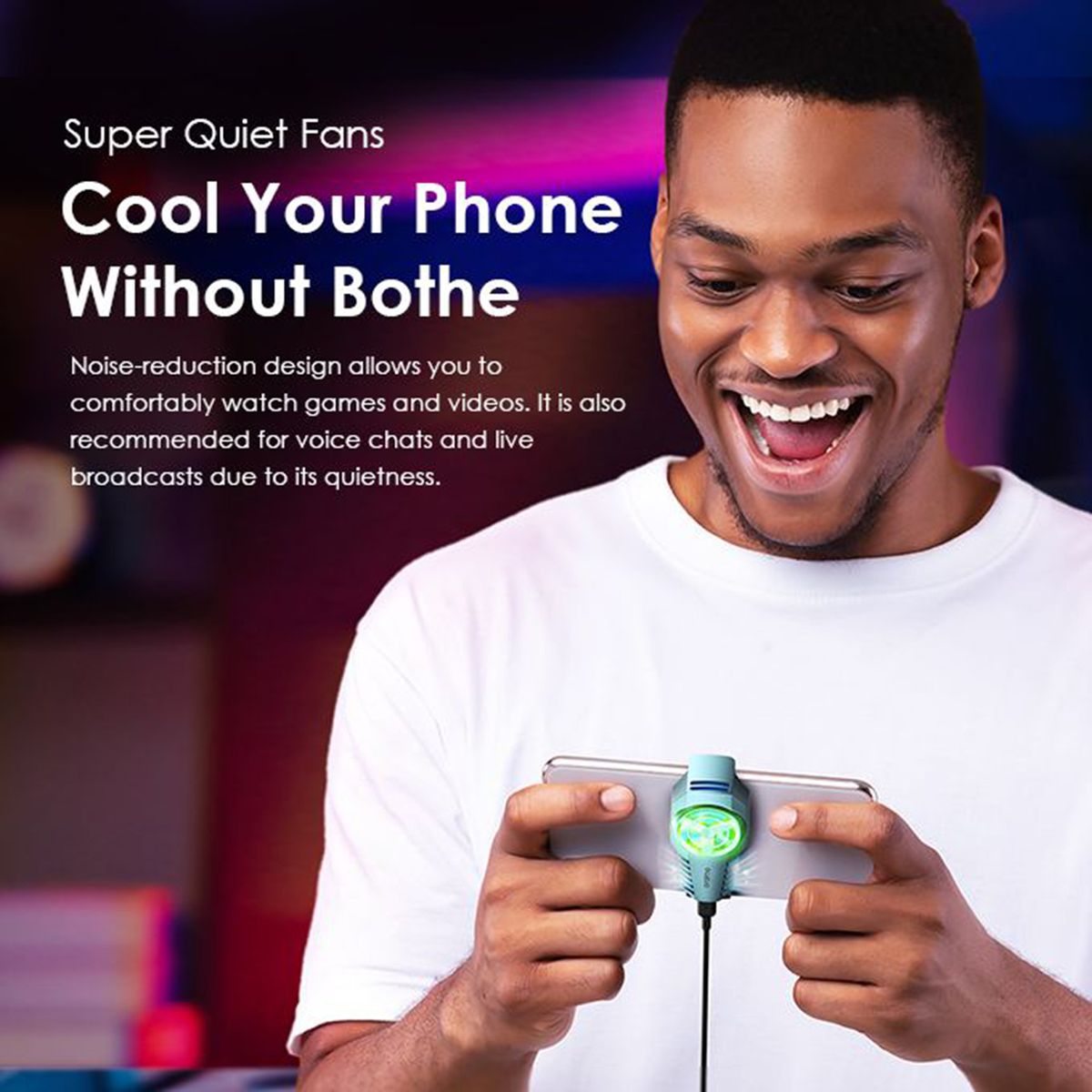 Gaming-Focused Design-Boosting Your Gaming Experience Designed especially for game lovers, this radiator let you no longer be troubled by overheating when playing mobile games. Enjoy the extraordinary carefree and comfortable game experience! Drop 14 Degrees in 10 Seconds-Ultra-fast Cooling Draw heat away from the smartphone and dissipates it with a powerful yet quiet 7-blade fan. Our intelligent temperature control automatically manages fan speeds on-the-fly. Super Quiet Fans-Cool Your Phone Without Bother Noise-reduction design allows you to comfortably watch games and videos.