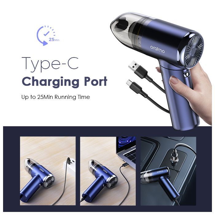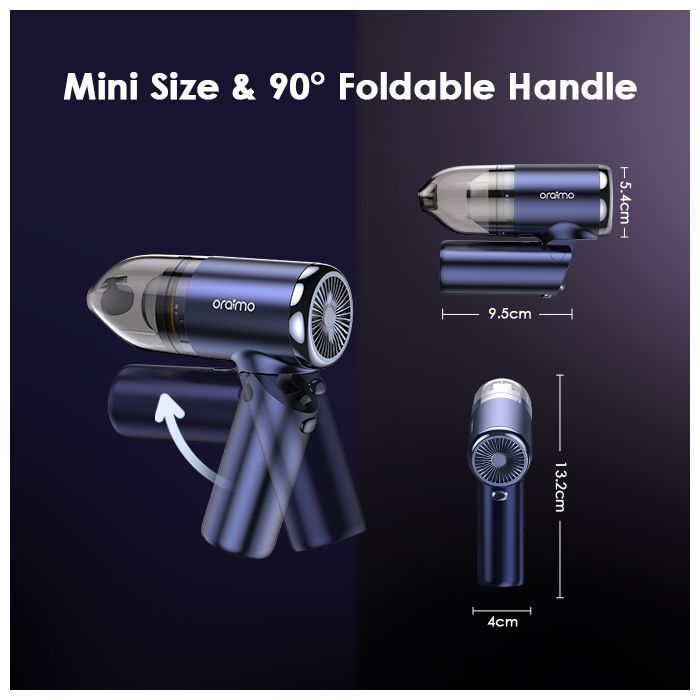 With the dust-blocking elastic rubber, oraimo rechargeable handheld vacuums prevents crumbs from falling out of the dust cup and avoids the need of secondary cleaning.Its cordless and ergonomic non-slip design make it super handy and comfortable to operate. As a mini hoover vacuum cleaner, it is also an ideal gift choice for families, friends, and colleagues.