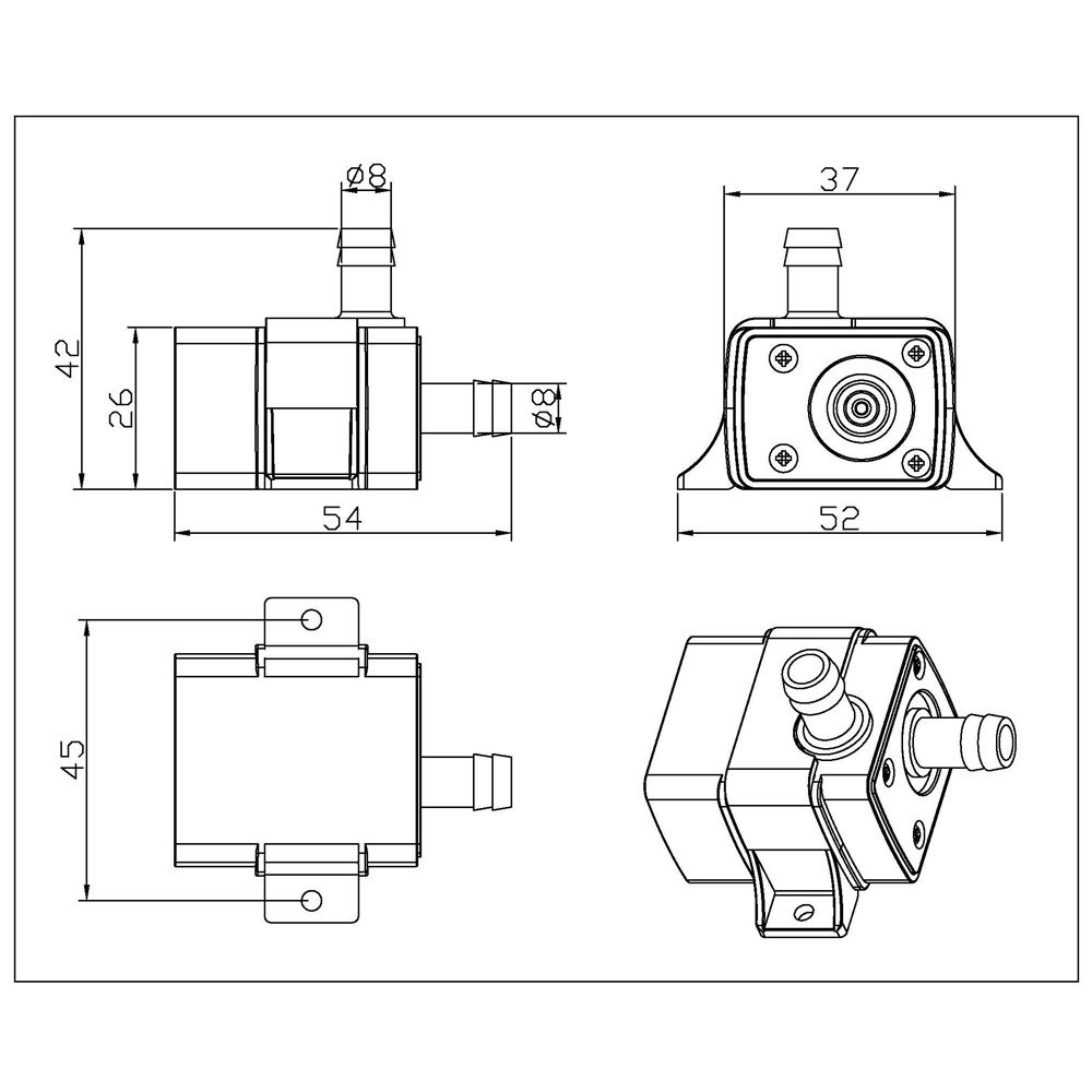 Inner diameter of inlet / outlet: 5.4mm / 0.21in