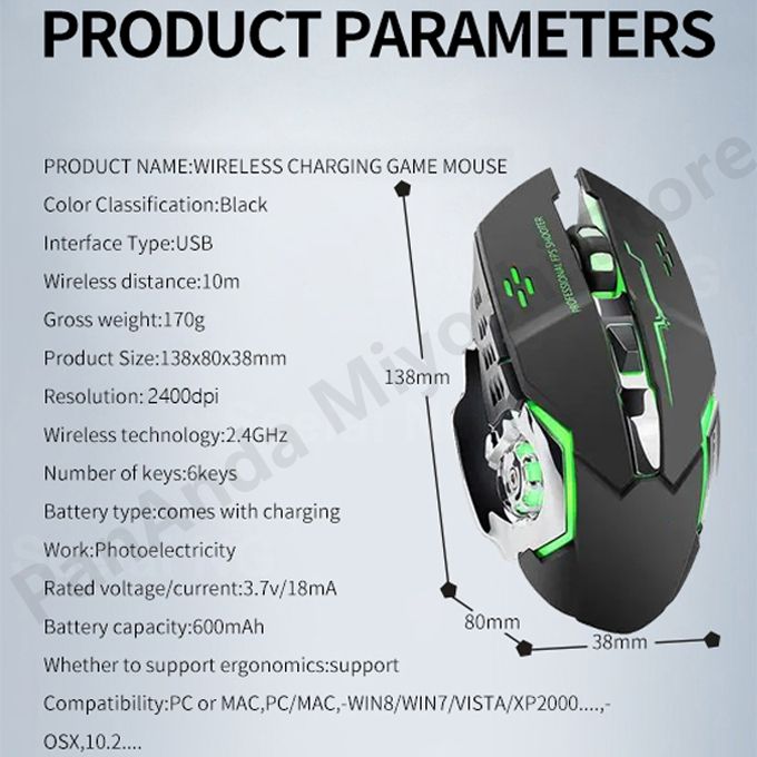 - PRODUCT NAME:WIRELESS CHARGING GAME MOUSE