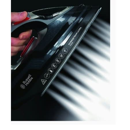 Take the hassle out of working through your ironing pile with the Russell Hobbs Auto Steam Iron. Featuring automatic steam generation, the iron makes it simple to tackle even the most stubborn creases with 45g per minute of continuous steam and 120g shot of steam softening wrinkles, resulting in a smooth finish each and every time. The irons specially designed non-stick soleplate effortlessly glides over fabrics while a vertical steam function lets you tackle creases on hanging items making it ideal for jackets, suits and even curtains. A large 320ml easy to fill transparent water tank gives you plenty of ironing time between refills and a comfort grip handle and temperature dial ensures comfort during use. The iron even features an anti-drip and self-cleaning function to keep maintenance to a minimum