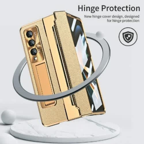 Buy Ultra-thin Case Pu Leather Hard Pc Kickstand For Samsung Galaxy Z Fold 6 - Gold in Nigeria