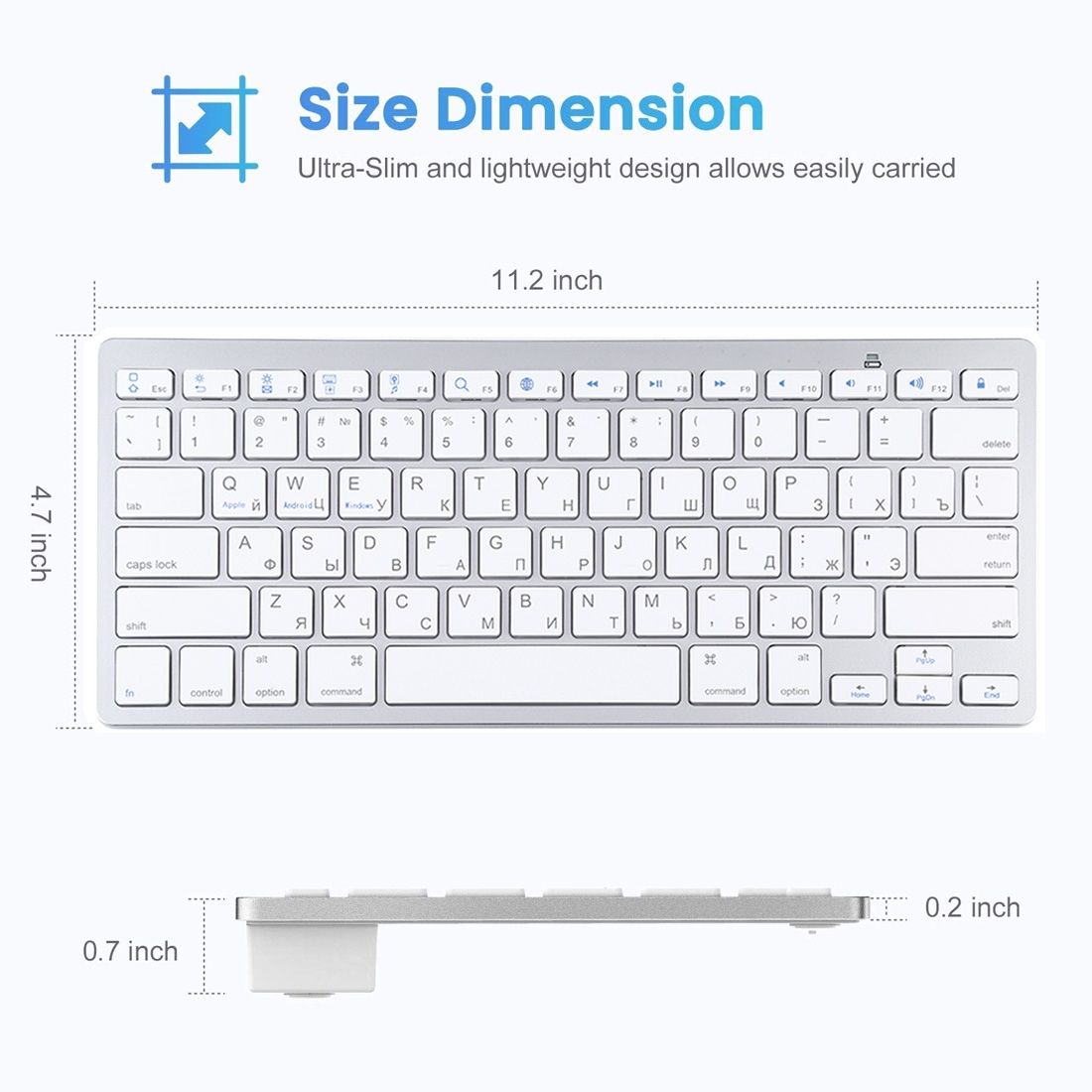 Ultra-thin Wireless Bluetooth Keyboard for iPad, Samsung, Huawei, Russian Keys(Silver)