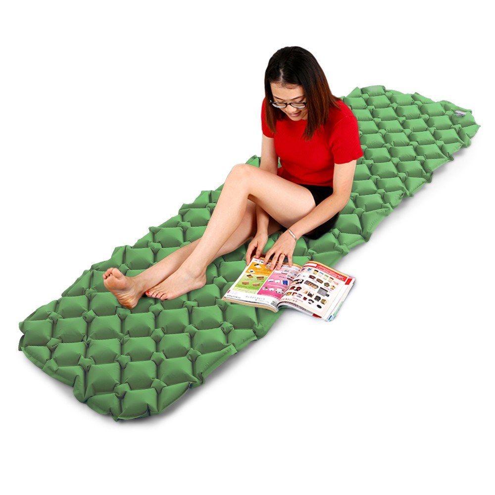 This sleeping pad features special engineered cell patterns that contour to the human body comfortably. With a quick flow valve, it takes only several breaths to inflate. It is lightweight and compact after deflated, very convenient to carry in the storage sack and stuff in your backpack.
