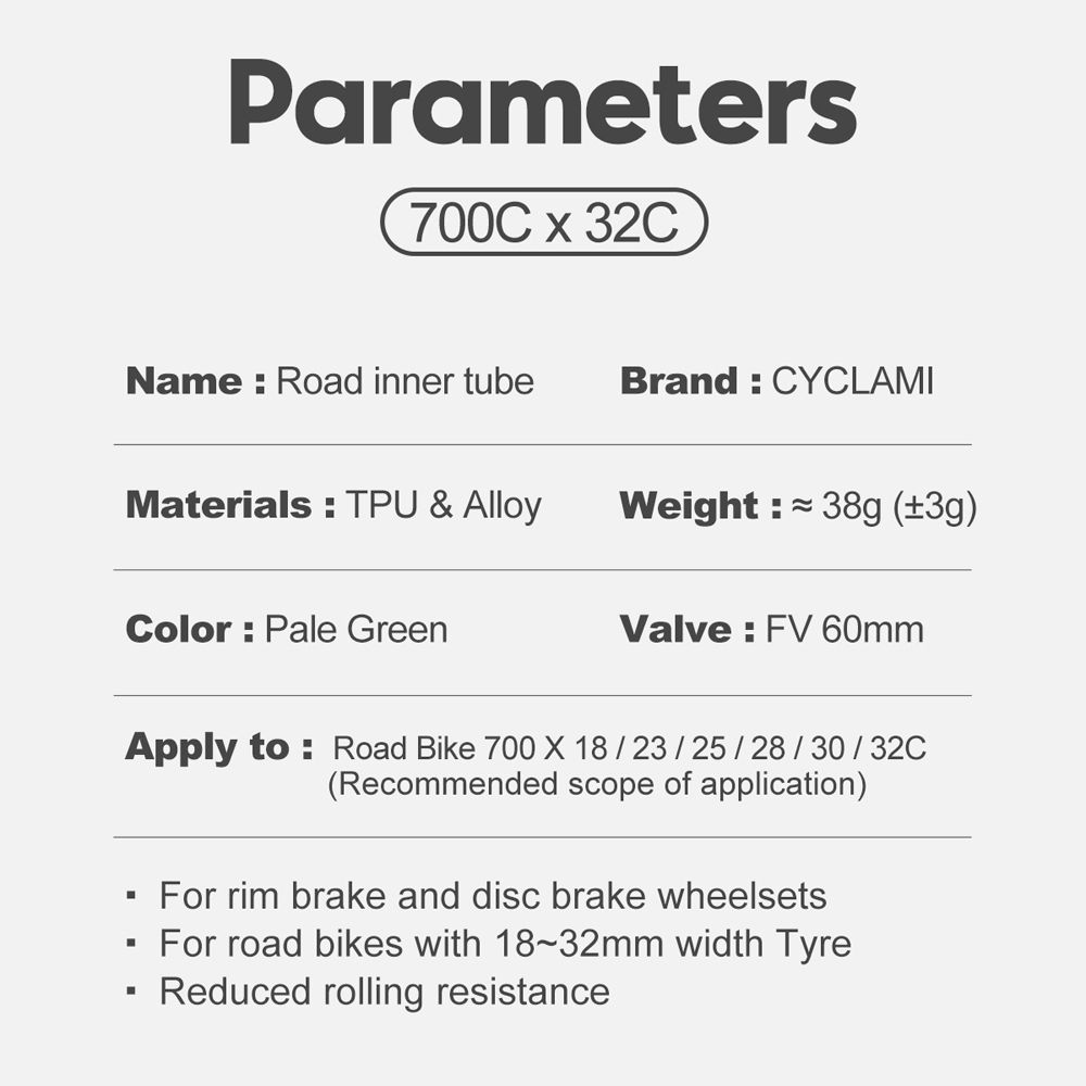 Apply to: Road Bike 700 X 18C / 23C / 2C5 / 28C / 30C / 32C (Recommended scope of application)