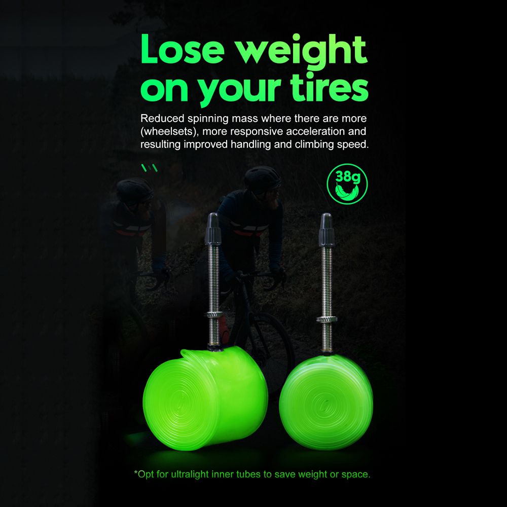 Lose weight on your tires, reduced spinning mass where there are more (wheelsets), more responsive acceleration and resulting improved handling and climbing speed.
