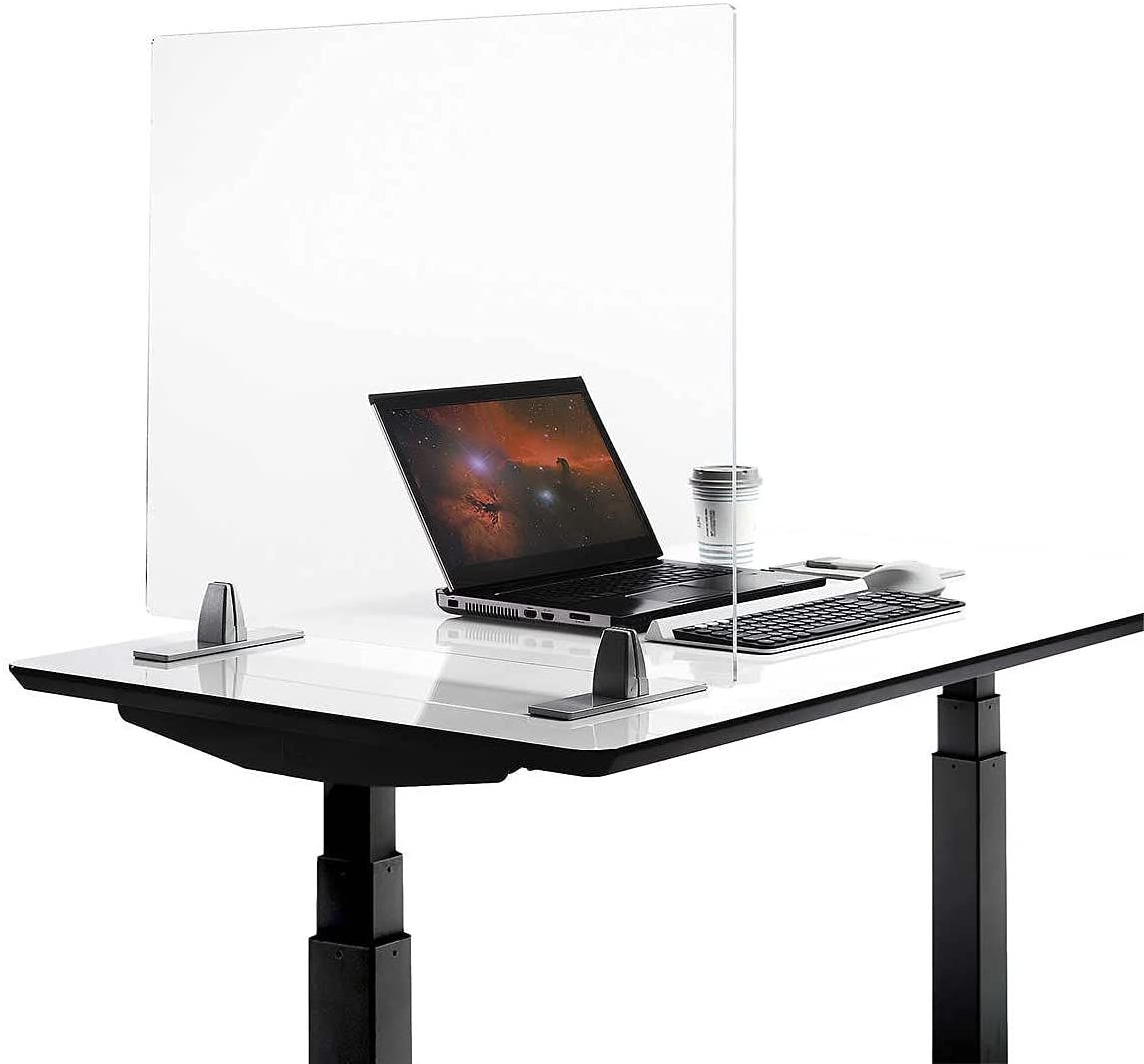 The UltraShield 30in x 24in (2 per Pack) Acrylic TableTop acrylic barrier will fit most standard size desk and is excellent for use in offices, schools, restaurants, salons or rental spaces. Large aluminum feet with padded bottoms keep the shield sturdy and stable.The UltraShield is designed with a 1in. gap at the bottom for transactions and exchanging paperwork. Quick and easy assembly - horizontal or vertical.